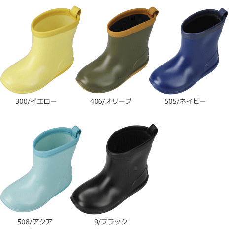 雨の日も元気イッパイの子供たちへ シンプルなデザインのレインブーツ ・カンタンに脱ぎ履き出来るショート丈 ・やわらかい素材で屈曲性◎ ・滑りにくい凹凸があるアウトソール ・インソールは取り外し可能で清潔に ■メーカー希望小売価格:2,500円+税 ■カラー: 300/イエロー 406/オリーブ 505/ネイビー 508/アクア 9/ブラック ■素材:PVC ■重量:約175g(片足17.0cm) ■高さ:約13cm(片足17.0cm) ■ヒール高:約2cm(片足17.0cm) ■生産国:中国 ※当店とメーカーの在庫を合わせた数を表示しておりますので 稀に欠品する場合もございます。