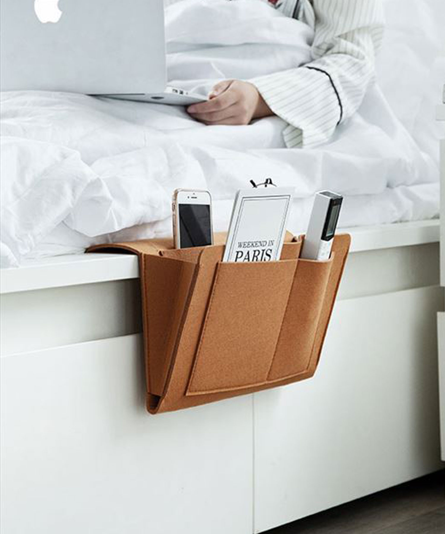 隙間に差し込んで使用できるので、ベッドサイドやソファーサイドなど隙間があればOK!! 【サイズ(cm)】開いたとき:42×32cm 【素材】フェルト 【生産国】CHINA