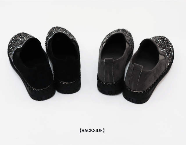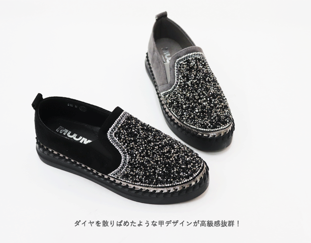 【SALE】キラキラ ダイヤ スリッポン 編み込みソール コンビ 柔らかい スニーカー クッション性 インヒール MD216 ブラック グレー ワイン S M L LL MUUM レディース ラウンドトゥ