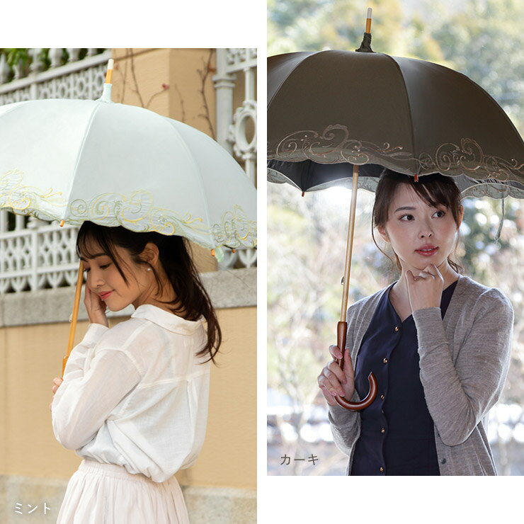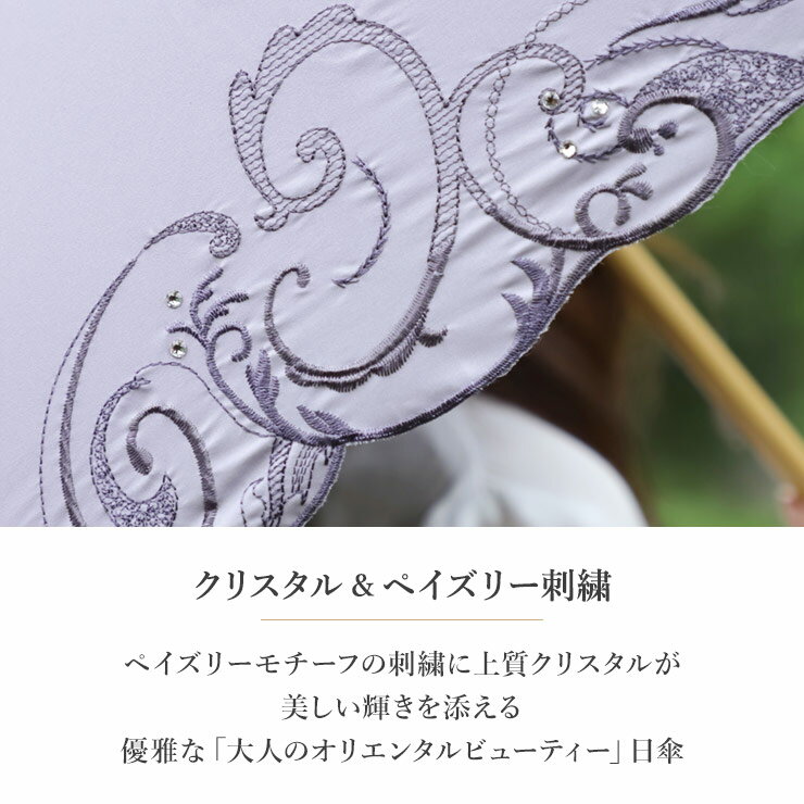 日傘 完全遮光 傘 晴雨兼用 長傘 女優日傘 送料無料 刺繍 涼しい「クリスタル&ペイズリー刺繍 かわず張り長日傘」 白 黒 遮光率100% 1級遮光 遮熱 かわず張り 晴雨兼用 長日傘 UVカット 刺繍 あす楽