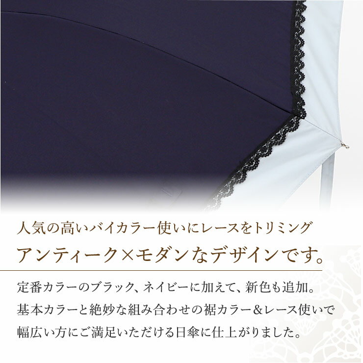 日傘 長日傘 完全遮光 涼しい 日傘 長傘 遮光率100%「バイカラーレースかわず張り日傘」 1級遮光 遮熱 かわず張り 晴雨兼用日傘 ギフト 母の日