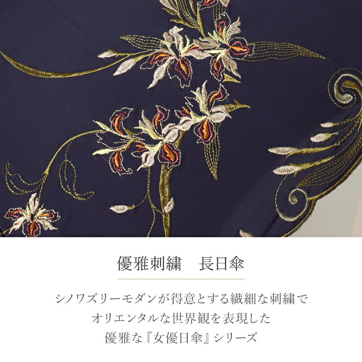 日傘 完全遮光 涼しい 日傘 長傘 遮光率100% 送料無料「優雅刺繍 かわず張り長日傘 55cm」遮光率100% 1級遮光 遮熱 かわず張り 晴雨兼用 刺繍 涼しい UVカット 晴雨兼用 母の日