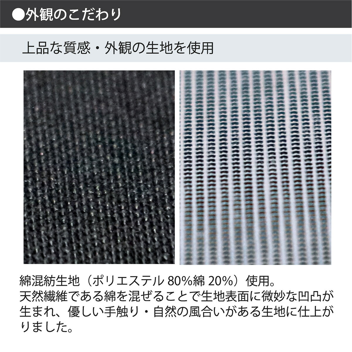 綿混紡生地に比べて質感・外観で劣ることは避けられません。