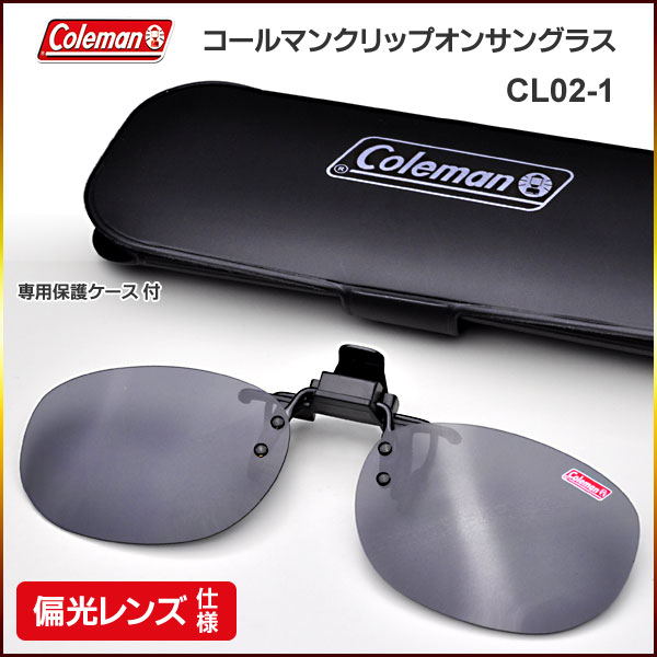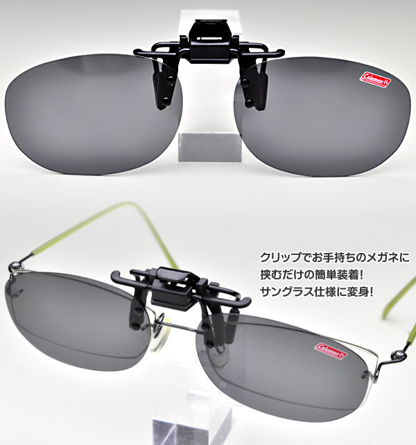 コールマン クリップオン偏光サングラス CL02-1 ●偏光レンズは、路面・水面・雪面・ガラス等に反射した光を取り除く効果が あるので、より快適な視界を確保します。