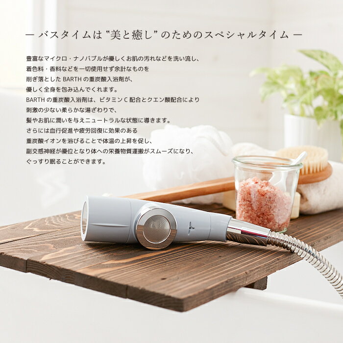 商品情報 本体素材 ASA樹脂・ABS樹脂・POM樹脂・ステンレス・EPMDパッキン本体サイズ・重量 長さ177mm×最大幅60mm・本体184g アダプター7g重炭酸バブルシャワー シャワーヘッド バスタイム 重炭酸 タブレット マイクロナノバブル BARTH 代謝 ビタミンC クエン酸 血行促進 疲労回復 isolafelice if 日本製 安心 2